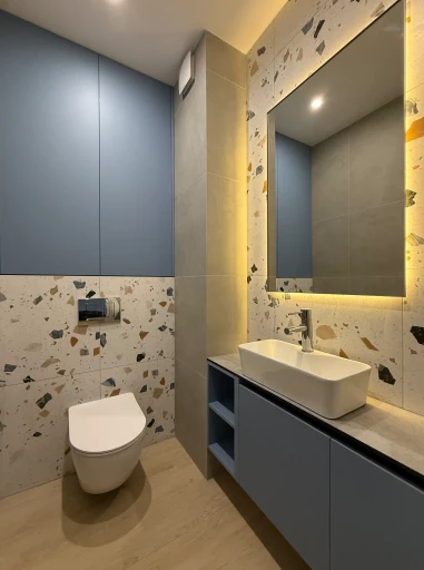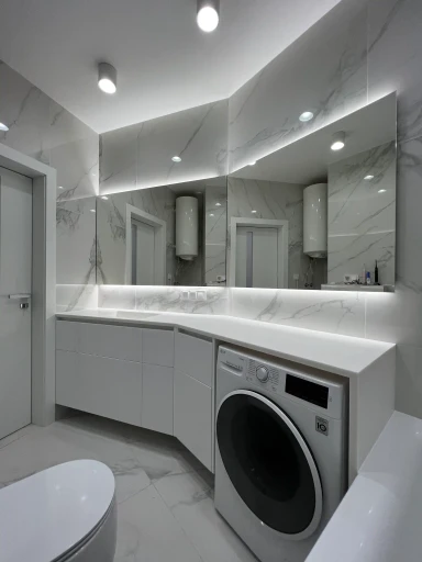 Вологостійкі матеріали та розумне використання простору ванної кімнати.