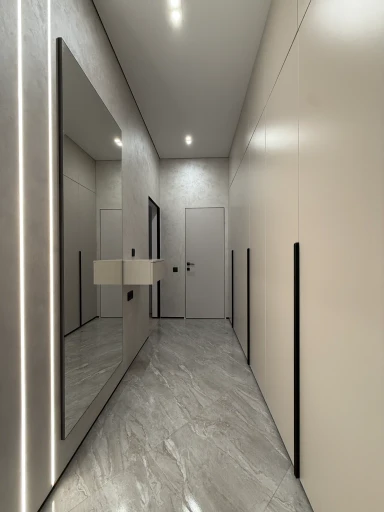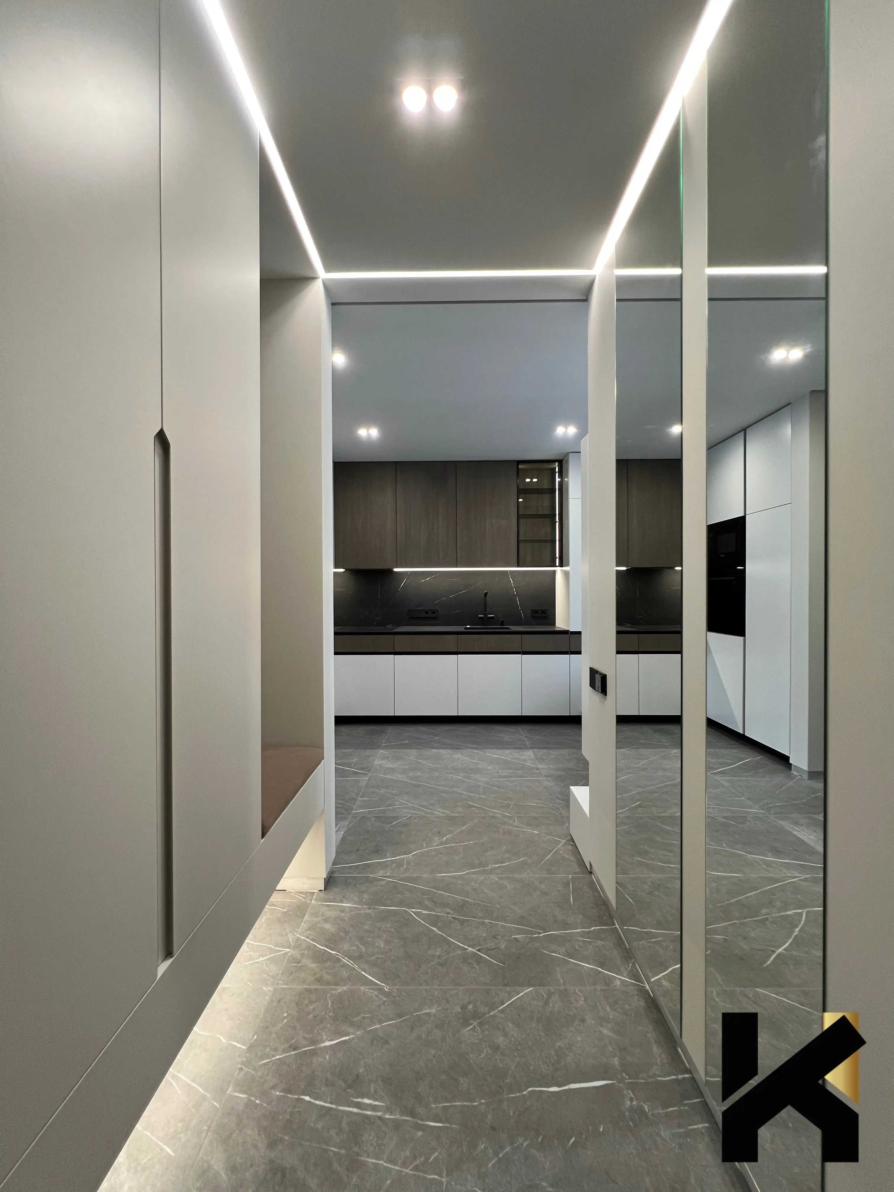 Лаконічні тумби, стелажі та приховані системи, що задають тон усій квартирі.